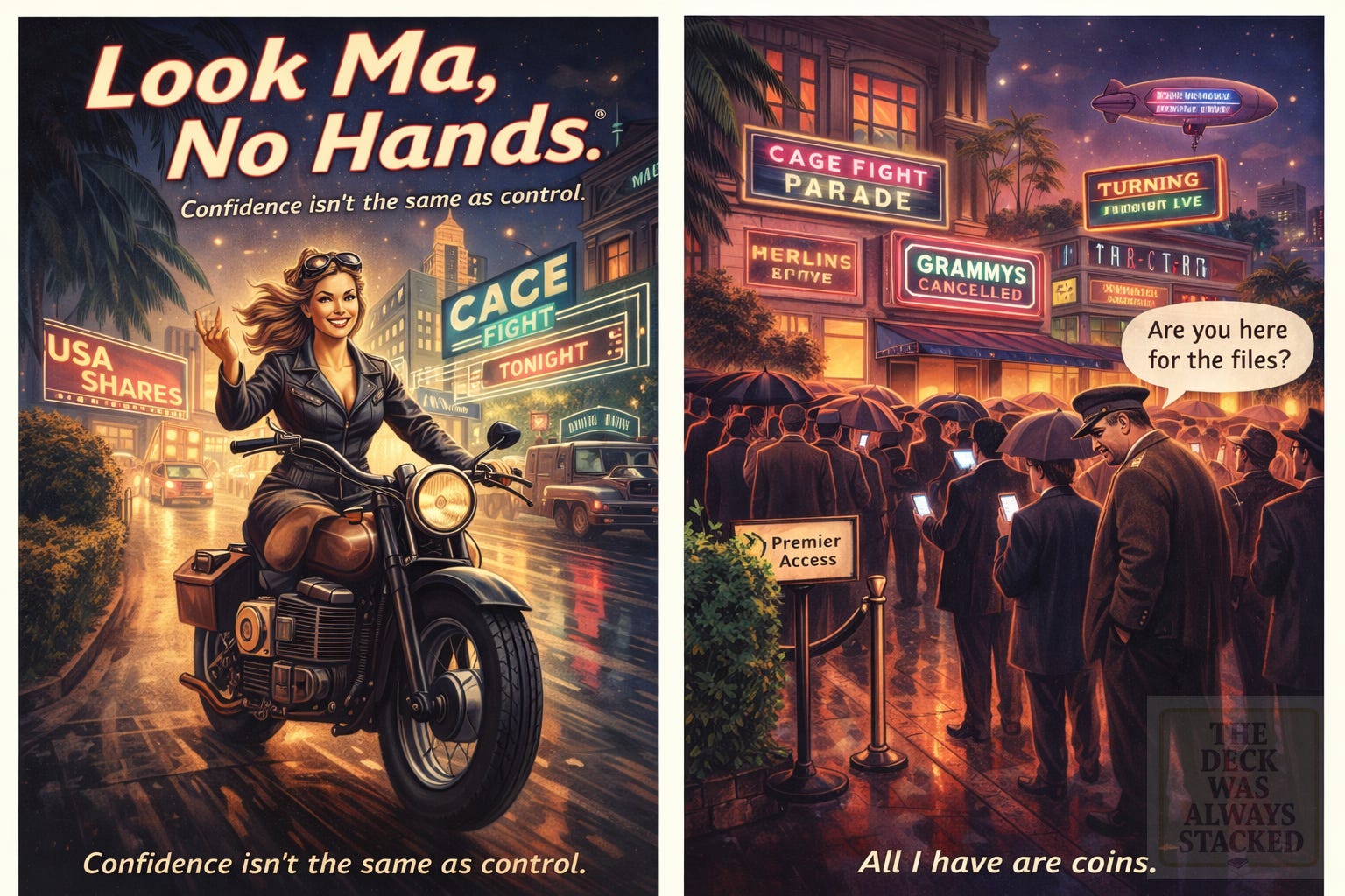 Meanwhile, the lapdogs nod. Premium value. MAGA style. Burning coal. Flags lifted just high enough to scrape asphalt and call it heritage. 2025 stamped on hood emblems in permanent marker.
