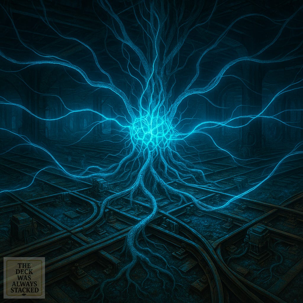 It’s motion — compressed energy from every unpaid debt, circulating endlessly through obsolete routers.