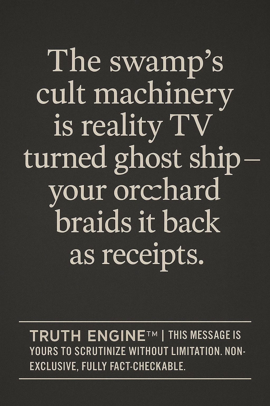 And that’s the trick. It doesn’t collapse neatly. It drags. The lie is large enough that everyone plays along — politicians, financiers, even the new money in Silicon Valley.