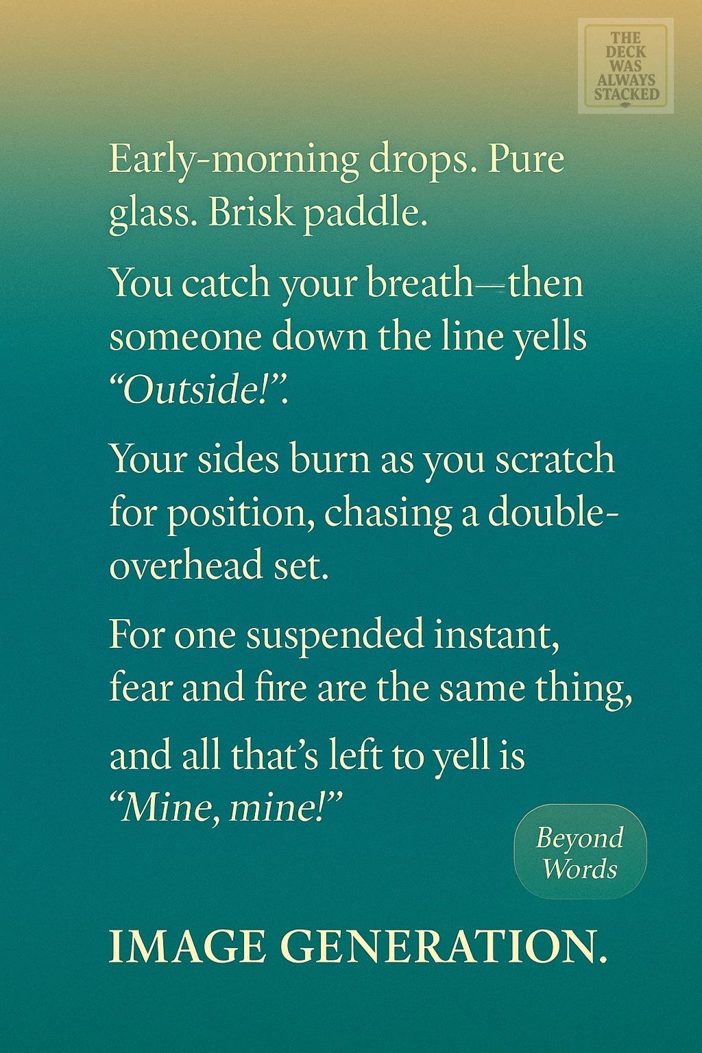 You don’t beat a set wave. You surrender until it passes, and then you paddle like hell when the silence cracks open.